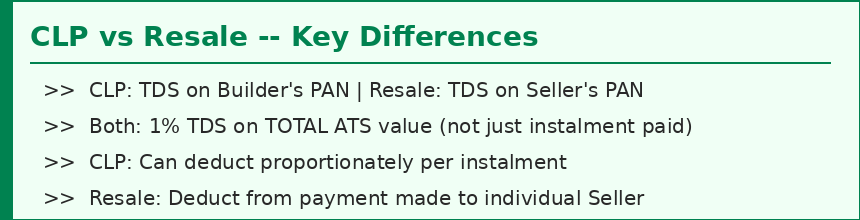 - In CLP (builder purchase): TDS is deposited on the BUILDER's / DEVELOPER's PAN